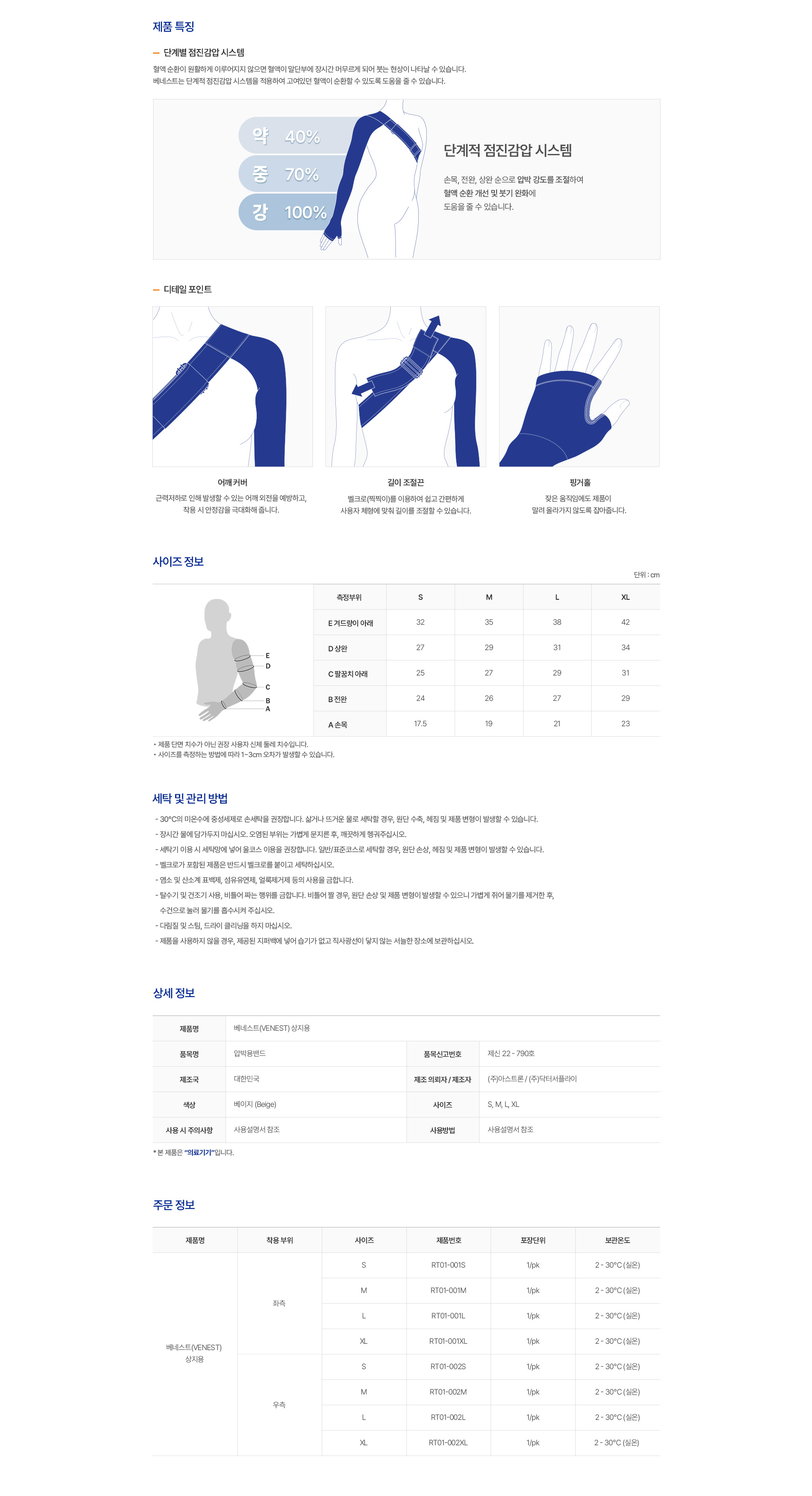 베네스트(VENEST) 상지용은 혈액이 괴는 것을 방지하거나 신체의 일부분을 탄력적으로 압박 또는 잡아주는 의료기기입니다.